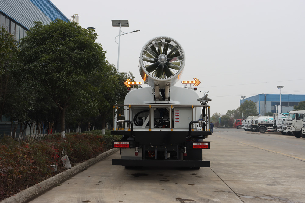 該車特點 本車主要使用噴霧噴射霧化水,與空氣中細顆粒物結合,沉降至地面,可以減少 70%以上細顆粒物, 大幅提高空氣質量。可對道路、廣場、公園等處空氣抑塵、凈化空氣;對建筑物拆除爆破、粉料堆場、土 建施工、露天礦場等場地產生的大量粉塵進行噴淋抑制,從源頭減少空氣污染。本產品具有路面沖洗、灑 水降塵、揚塵抑制等多種功能,是各地進行環衛保潔、空氣治理的專用車輛。