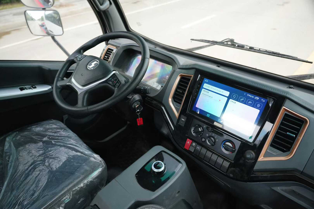 一、底盤配置: 采用陜汽 SX3120EV321N車身,配置玉柴TZ375XSSF-SZF614發動機185/252馬力,國六排放標準,軸距3200(mm),整備質量5.4噸,額定載質量6.465噸,五擋變速箱,帶動力轉向,帶原廠空調,該車上黃牌,城區道路請注意限行標識。