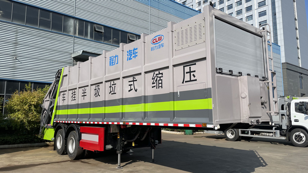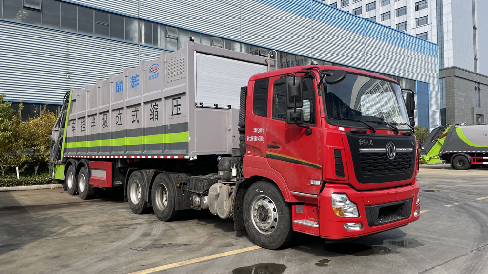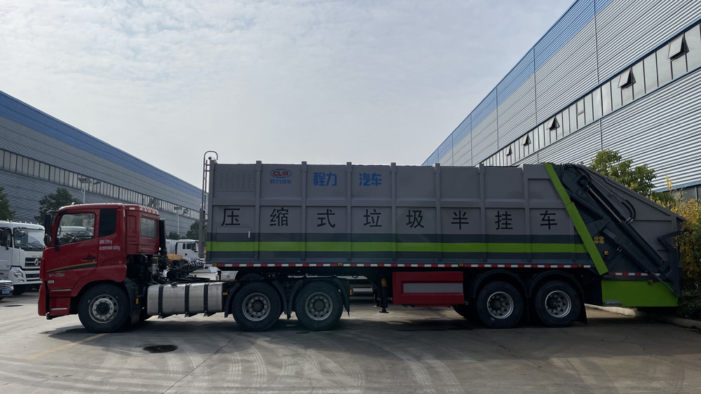 四、其他說明: 半掛式設(shè)計(jì)使其車身較長(zhǎng),車廂容積一般可達(dá) 30-40 立方米甚至更大,能裝載大量垃圾,可有效減少運(yùn)輸次數(shù),提高垃圾清運(yùn)效率,適合城市大型垃圾轉(zhuǎn)運(yùn)站、大型社區(qū)或商業(yè)區(qū)等垃圾集中區(qū)域的垃圾清運(yùn)。對(duì)于生活垃圾、建筑垃圾、工業(yè)垃圾等多種類型垃圾,只要在車輛設(shè)計(jì)承載范圍內(nèi),均可進(jìn)行裝載運(yùn)輸。較大的空間也便于收納體積較大的垃圾。