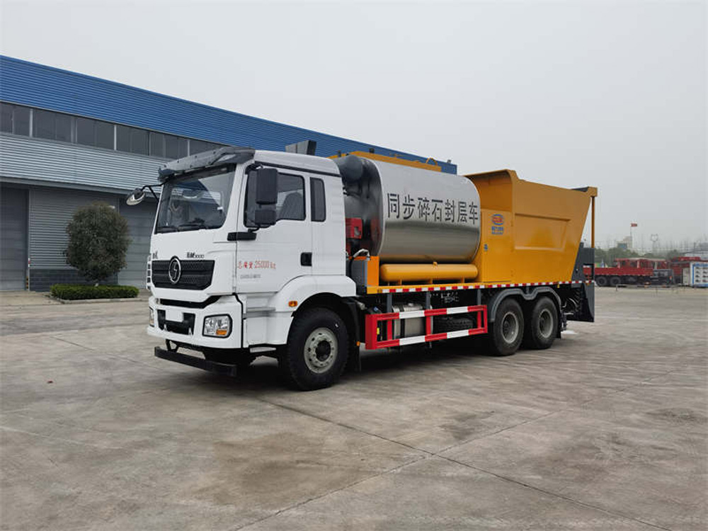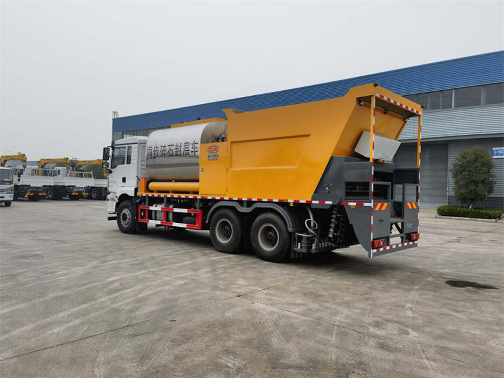該車特點 同步碎石封層是指利用同步碎石封層車將瀝青結合料的噴灑和石料的灑布同時進行,使瀝青結合料與石料之間有最充分的接觸,以達到它們之間最大 限度的粘結度。其更容易保證粘結劑和石料之間穩定的比例關系,提高作業生產率,減少了機械配置,降低了施工成本。瀝青路面經過同步碎石封層后,具有更好的防滑和防滲水性能,能有效治愈路面貧油、掉粒、輕微網裂、車轍、沉陷等危害。無論是高等級公路還是普通公路,都可以使用此項技術。同步碎石封層技術具有極強的防水性,極高的抗滑性,并且具有處理路面裂縫的良好性能,在無石料流失的情況下,可確保