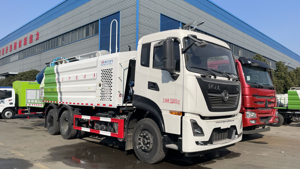 該車特點 承載能力強:采用東風天龍后雙橋加強型底盤,配備 5 噸前橋、10 噸級雙后橋,搭配 11.00R20 輪胎,能夠穩定承載大容量水罐、霧炮設備及其他相關裝置的重量,確保車輛在各種工況下行駛的穩定性和安全性. 舒適性與安全性高:一排半帶臥鋪駕駛室,配備航空減震座椅、通道式儀表盤、液壓方向帶助力、原廠冷暖空