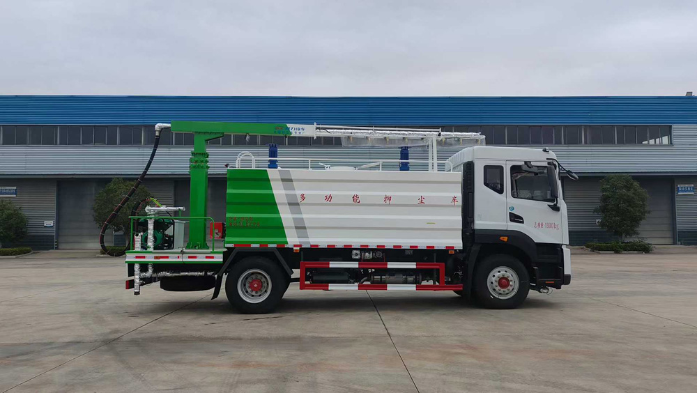 三、多功能抑塵車工作原理:霧炮機將水高壓霧化為50μm左右的細小顆粒,再通過遠程風炮將水霧送至100至120米半徑范圍內,作業5分鐘即可實現覆蓋區域面積4.5萬多平方米,是局部降低因PM2.5、PM10顆粒物超標而造成的霧霾污染的理想技術,是一種更先進、更科學、能耗更低、凈化效果顯著的新型空氣凈化技術。