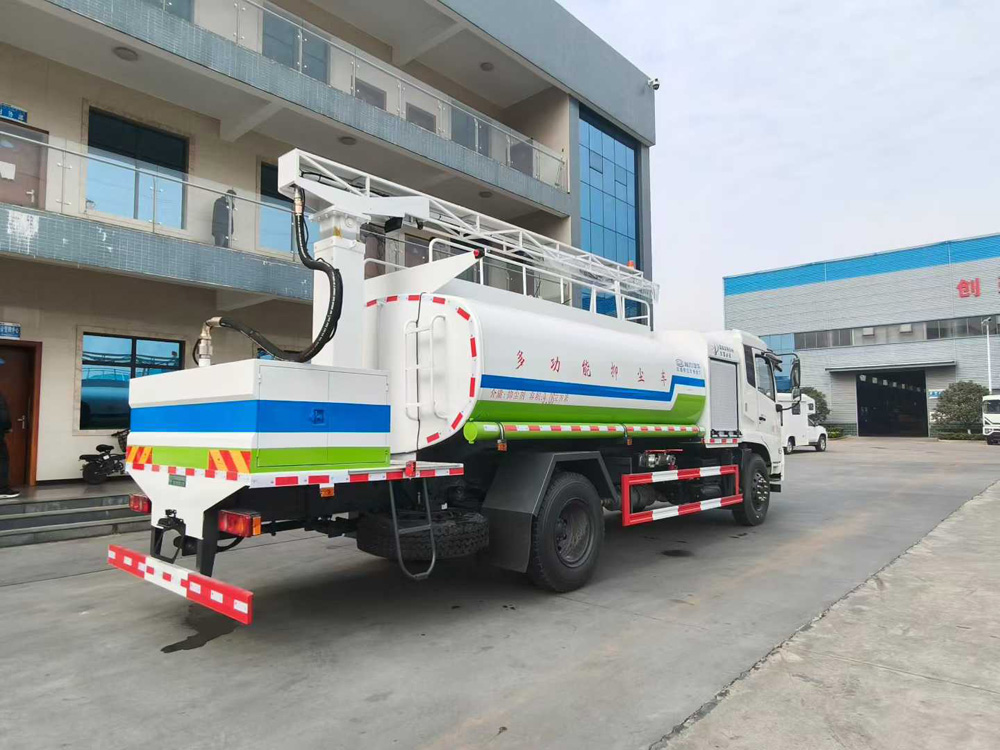 六、選裝配置:選配駕駛室內電控氣動操作;大鴨嘴前沖噴頭壹對;萬向前沖球閥;路面沖洗水管卷盤;本田高壓水泵,水槍可沖洗人行道、移動洗車等; 藥盤;長警燈,LED箭頭燈;罐側帶閘門,罐后加裝噴霧降塵裝置;灑水車泵標配程力泵選配杭州威龍泵;全車大口徑球閥;罐體內部防銹、防腐、保溫、襯塑處理。